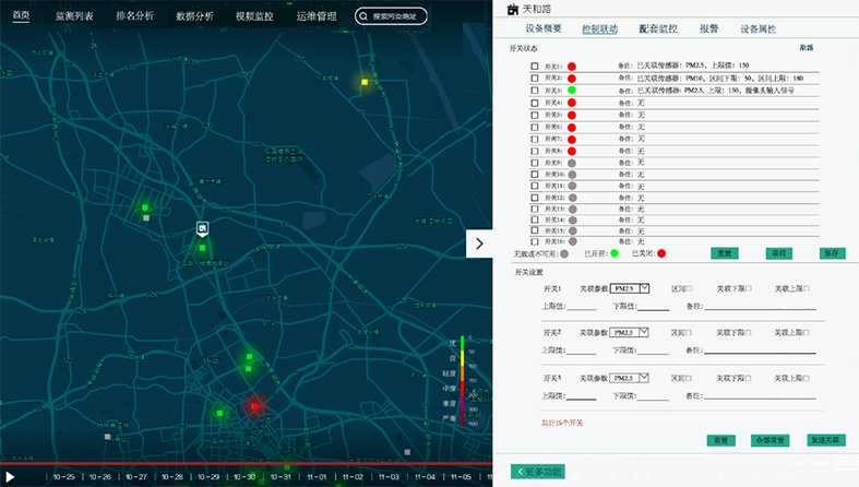 設(shè)備帶有繼電器,可以和設(shè)備檢測到的數(shù)據(jù)進(jìn)行關(guān)聯(lián),可選手動(dòng)或自動(dòng)啟動(dòng)。例如,揚(yáng)塵超標(biāo)噴淋等。
