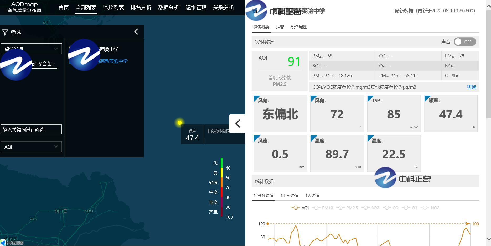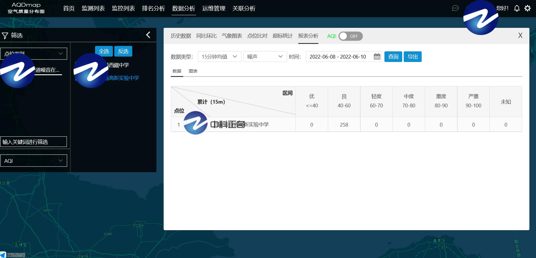 中科正奇ZK-ZS在線噪聲全自動監(jiān)測系統(tǒng),可根據(jù)各校需求增加PM2.5、PM10、噪聲、溫度、濕度等環(huán)境數(shù)據(jù),結(jié)合智能云平臺界面可隨時隨地查看實時數(shù)據(jù)、歷史數(shù)據(jù)、同比環(huán)比、氣象圖表、點位比對、超標統(tǒng)計、報表分析、統(tǒng)計曲線、統(tǒng)計柱狀圖高效管理學(xué)校噪聲污染