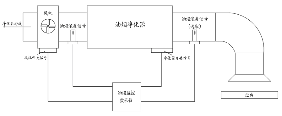 6.多項(xiàng)數(shù)據(jù)監(jiān)測(cè):油煙凈化器開關(guān),風(fēng)機(jī)開關(guān)狀態(tài),聯(lián)動(dòng)比,凈化效率等