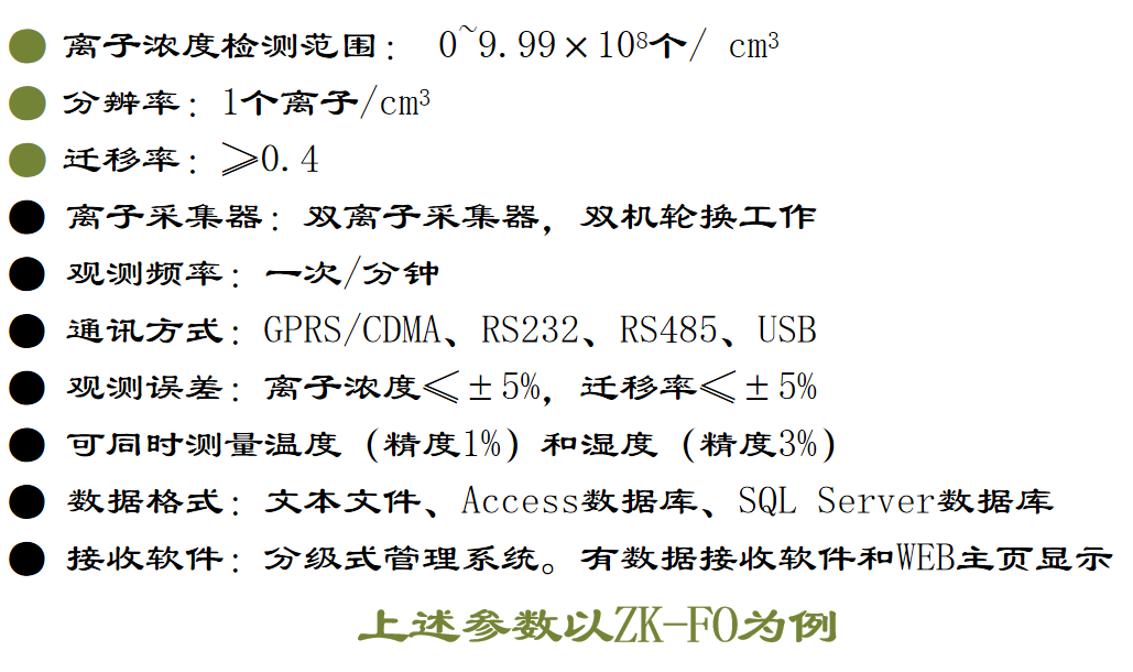 中科正奇ZK - F O 負氧離子監(jiān)測系統(tǒng)按照國家林業(yè)局發(fā)布的” 空氣負( 氧) 離子濃度監(jiān)測站點建設(shè)技術(shù)規(guī)范“ LY / T 2 5 8 7 — 2 0 1 6 標(biāo)準(zhǔn)自主研發(fā),自主生產(chǎn)。 該產(chǎn)品設(shè)計使用最先進的雙重同心圓筒原理設(shè)計, 同時采用最 新“ J I S B ” 氣體離子密度標(biāo)準(zhǔn), 滿足現(xiàn)行國際標(biāo)準(zhǔn)。