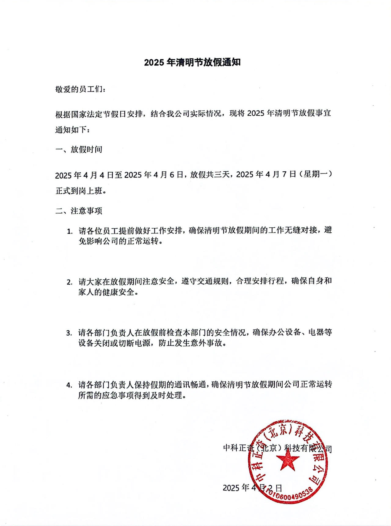2025年清明節(jié)放假通知
