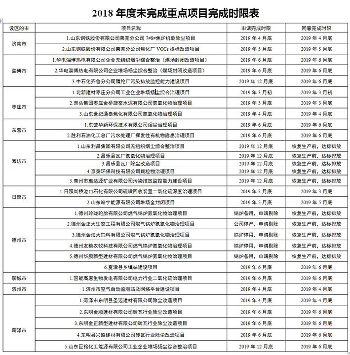 山東省生態(tài)環(huán)境廳關(guān)于調(diào)整2018年度未完成重點(diǎn)項(xiàng)目完成時(shí)限的通知