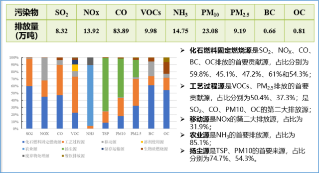 調(diào)查顯示,全區(qū)二氧化硫的主要排放來源是電力供熱、民用燃燒、建材行業(yè)和冶金行業(yè)。石嘴山市的排放貢獻(xiàn)最大,且無論是基于國土面積還是GDP,其排放強度均高于其他城市;其主要排放來源是碳素生產(chǎn)企業(yè)和冶金企業(yè)。全區(qū)氮氧化合物的主要排放來源是電力供熱、道路移動源、建材行業(yè)以及非道路移動源,排放貢獻(xiàn)最大的是銀川市,道路移動源、非道路移動源、電力供熱行業(yè)是銀川市氮氧化合物的首要貢獻(xiàn)源。全區(qū)PM2.5的主要排放來源是電力供熱和冶金行業(yè),排放貢獻(xiàn)最大的是吳忠市,其主要排放來源于冶金行業(yè)。全區(qū)揮發(fā)性有機物排放貢獻(xiàn)最大的是寧東能源化工基地的石化與化工行業(yè)。