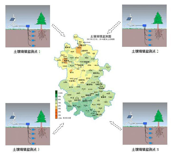 土壤墑情監(jiān)測系統(tǒng)能夠全面、科學、真實地反映被監(jiān)測區(qū)的土壤變化,可及時、準確地提供各監(jiān)測點的土壤墑情狀況,為減災抗旱提供了重要的基礎信息。