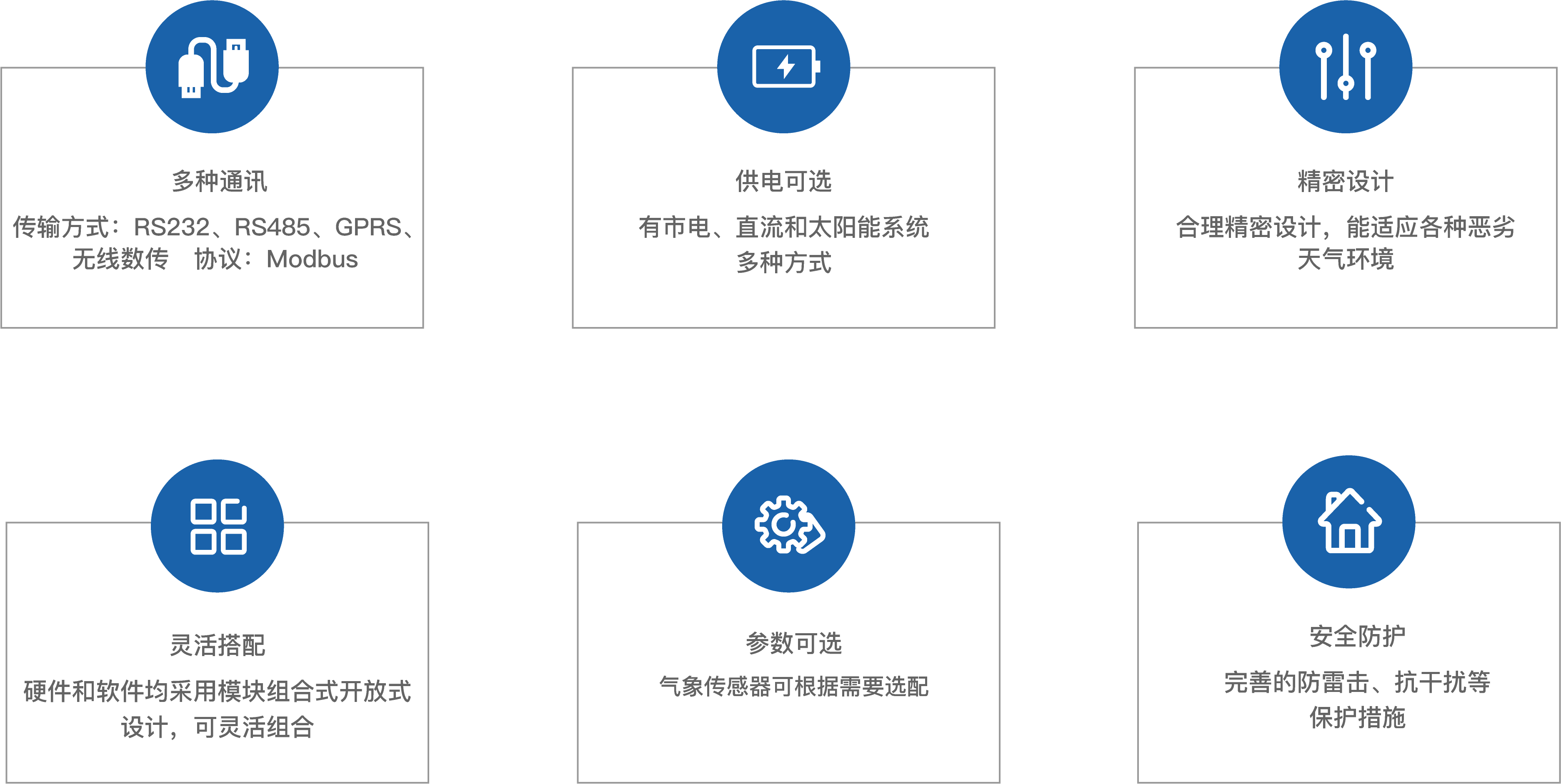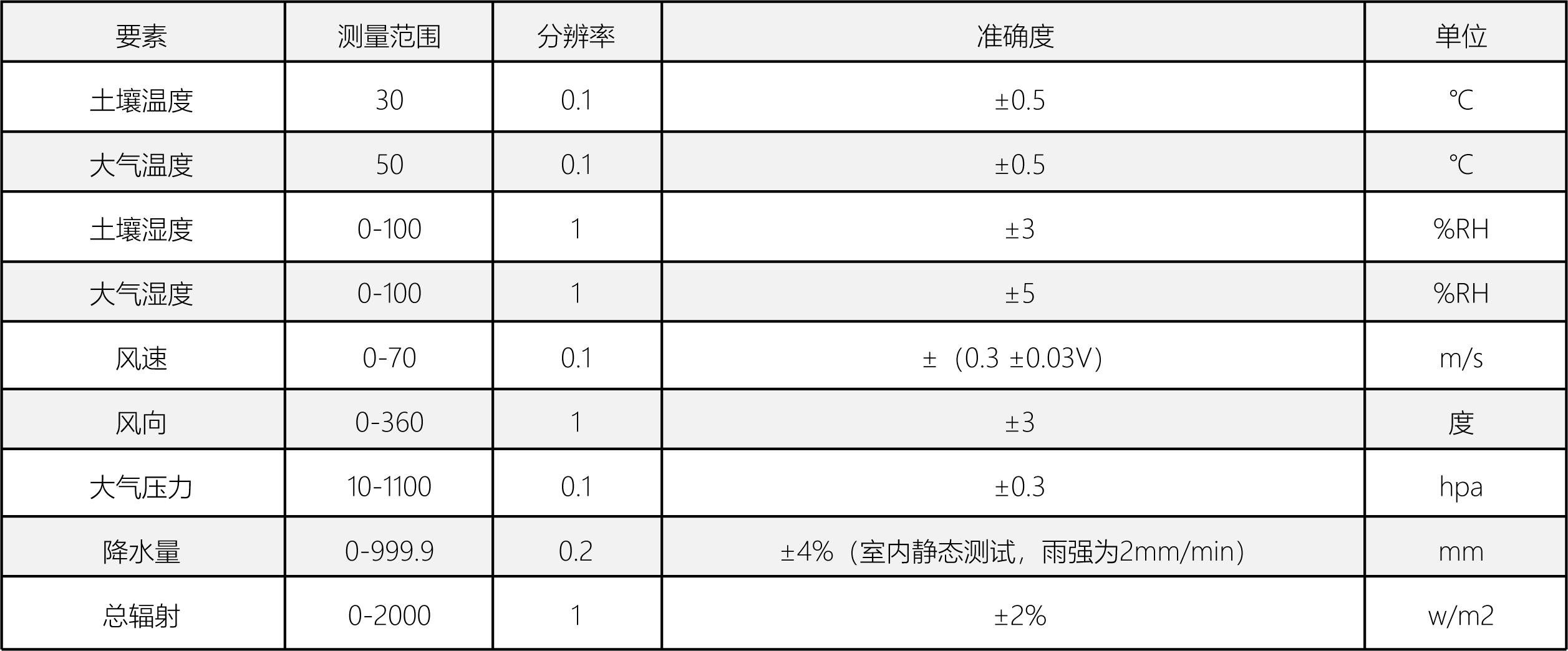 實(shí)時(shí)監(jiān)測風(fēng)速、風(fēng)向、雨量、溫度、濕度、氣壓、光照度、土壤溫度、土壤濕度等九要素氣象參數(shù)