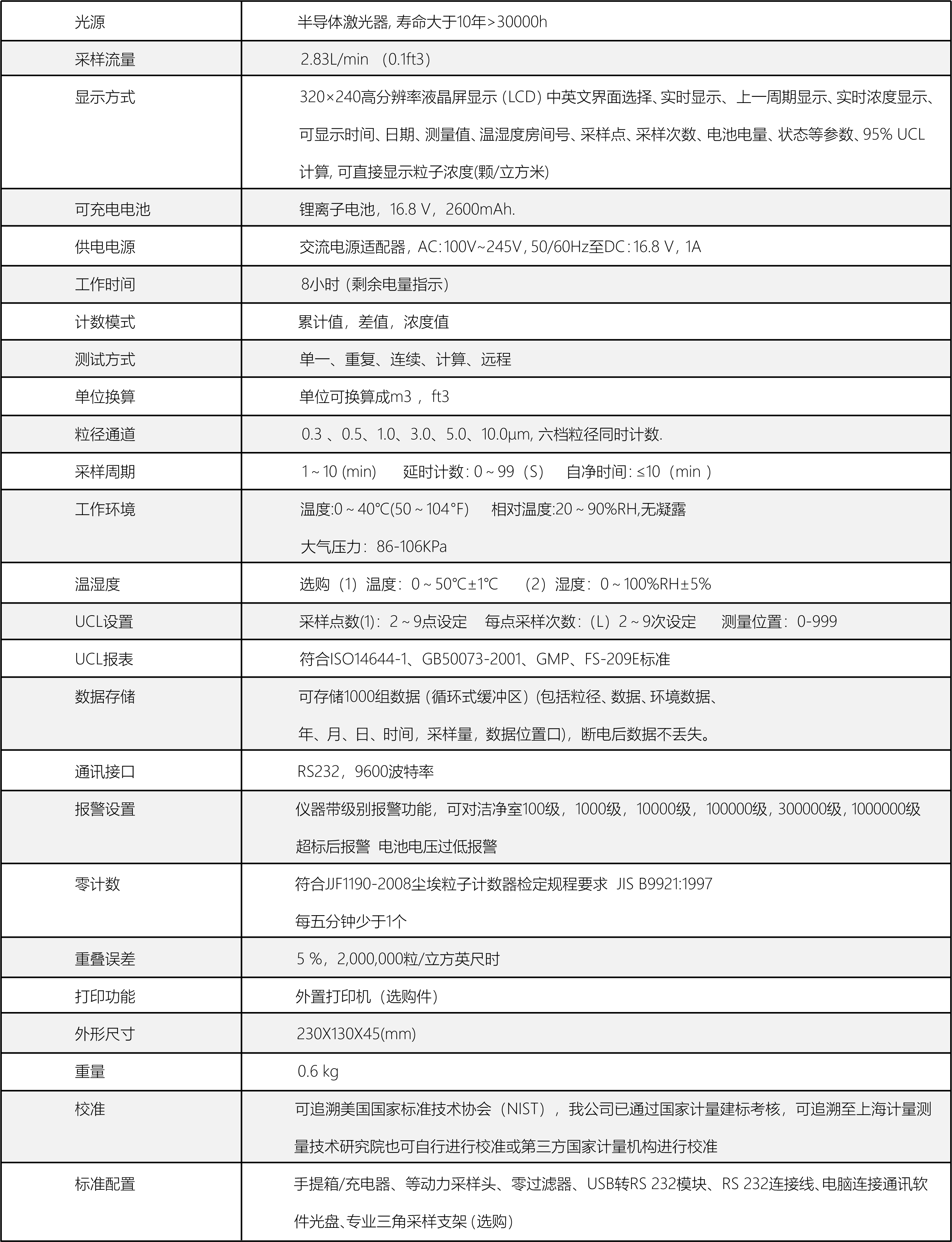 型塵埃粒子計數(shù)器的技術(shù)指標(biāo)均滿足國家計量總局頒布的