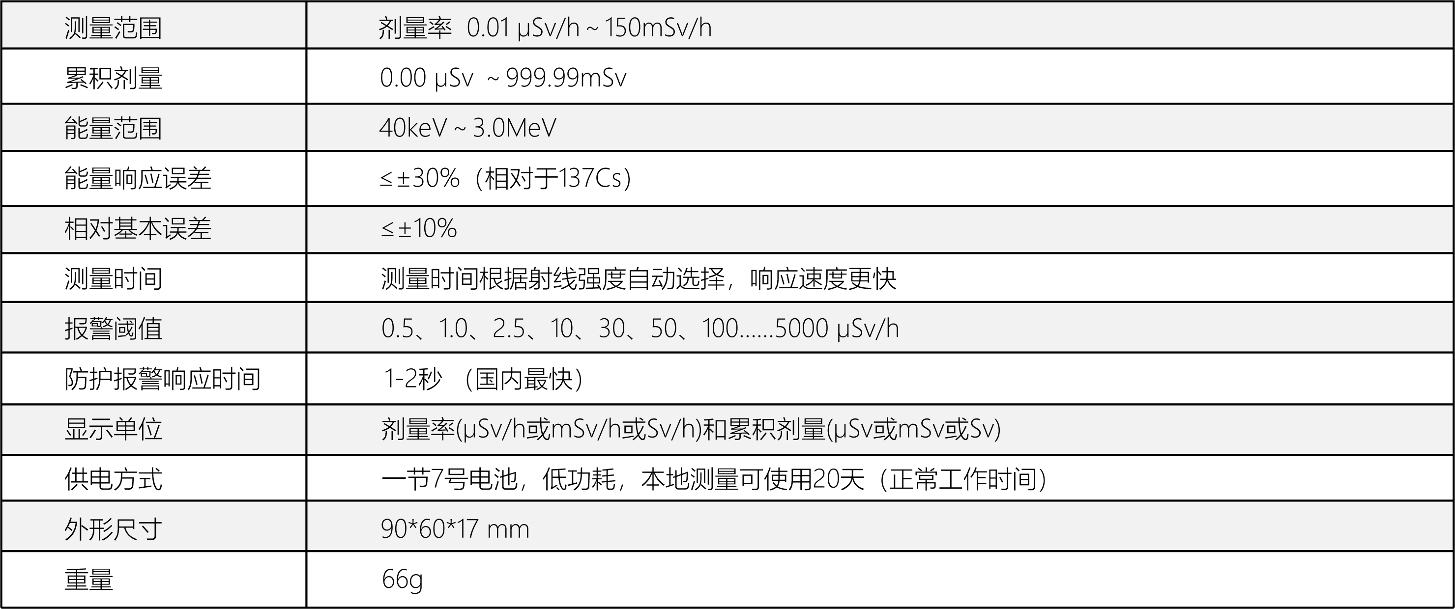 ZK-DP802i型放射性個人劑量報警儀(GM管)經(jīng)濟型用于X、γ射線和硬β射線的輻射防護監(jiān)測;適用于核電站、加速器、同位素應用、工業(yè)X、γ無損探傷、放射醫(yī)療(碘、鍀、鍶)、鈷源治療、γ輻照、放射性實驗室、再生資源、核設施周圍環(huán)境監(jiān)測等領域,及時給予報警指示,確保工作人員的安全。