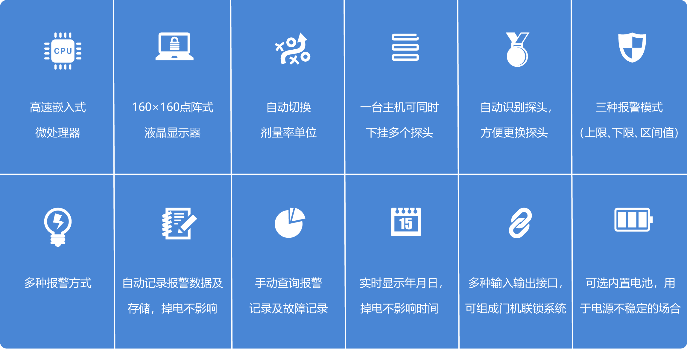 ZK-RL5000區(qū)域輻射安全報警儀能夠?qū)崟r監(jiān)測х、γ輻射劑量率,并在發(fā)生超閾值時給出報警信號。它選用了高速的嵌入式微處理器與160x160點(diǎn)陣式顯示器,即滿足儀器能夠?qū)崟r的監(jiān)測、快速的響應(yīng);又保證了操作上的簡便與人性化。主機(jī)和探頭之間采用了可靠的通訊方式,保證了主機(jī)能實(shí)時顯示每個探頭的具體劑量率,并能實(shí)時指示出探頭的當(dāng)前狀態(tài)(正常/故障/掉線)。另可根據(jù)現(xiàn)場要求,選配輻射區(qū)域監(jiān)測軟件,該軟件可連續(xù)存儲30個探頭5 年以上的歷史數(shù)據(jù)。